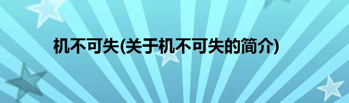本文关于机不可失的简介就讲解完毕,希望对大家有所帮助。