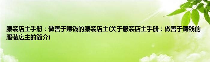 大家好,服装店主手册:做善于赚钱的服装店主,关于服装店主手册:做善于赚钱的服装店主的简介很多人还不知道,现在让我们一起来看看吧!