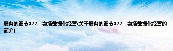 大家好,服务的细节077:卖场数据化经营,关于服务的细节077:卖场数据化经营的简介很多人还不知道,现在让我们一起来看看吧!