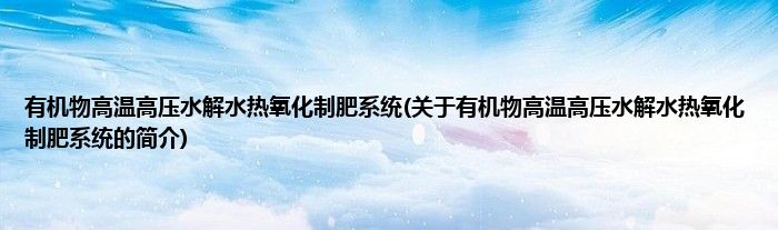 本文关于有机物高温高压水解水热氧化制肥系统的简介就讲解完毕,希望对大家有所帮助。