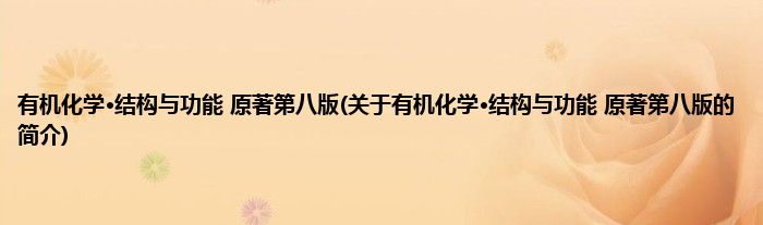 本文关于有机化学·结构与功能 原著第八版的简介就讲解完毕,希望对大家有所帮助。