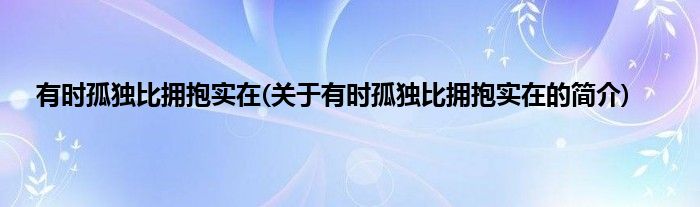 本文关于有时孤独比拥抱实在的简介就讲解完毕,希望对大家有所帮助。