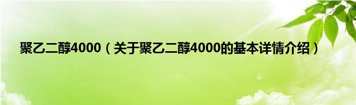 本文关于聚乙二醇4000的基本详情介绍就讲解完毕,希望对大家有所帮助。