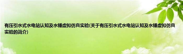 大家好,有压引水式水电站认知及水锤虚拟仿真实验,关于有压引水式水电站认知及水锤虚拟仿真实验的简介很多人还不知道,现在让我们一起来看看吧!