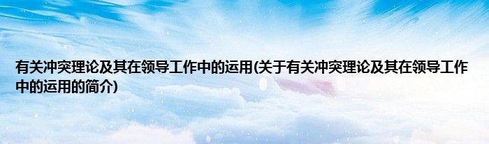 大家好,有关冲突理论及其在领导工作中的运用,关于有关冲突理论及其在领导工作中的运用的简介很多人还不知道,现在让我们一起来看看吧!