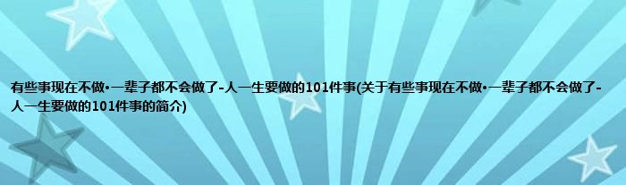 本文关于有些事现在不做·一辈子都不会做了-人一生要做的101件事的简介就讲解完毕,希望对大家有所帮助。