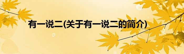 有一说二(关于有一说二的简介)