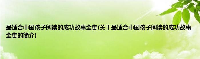 本文关于最适合中国孩子阅读的成功故事全集的简介就讲解完毕,希望对大家有所帮助。
