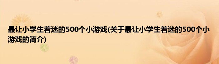 大家好,最让小学生着迷的500个小游戏,关于最让小学生着迷的500个小游戏的简介很多人还不知道,现在让我们一起来看看吧!