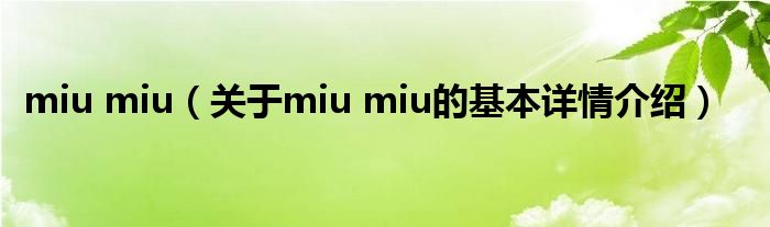 本文关于miu miu的基本详情介绍就讲解完毕,希望对大家有所帮助。