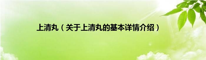 本文关于上清丸的基本详情介绍就讲解完毕,希望对大家有所帮助。