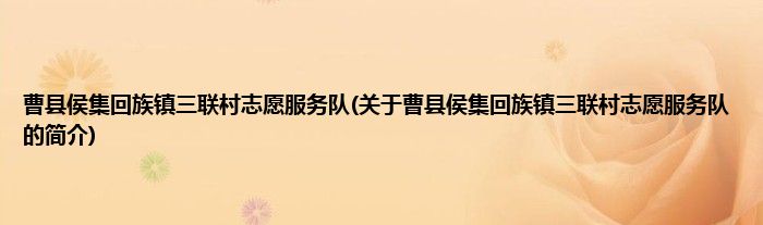 1、 曹县侯集回族镇三联村志愿服务队是由曹县侯集回族镇政府志愿服务队领导下的志愿团体。