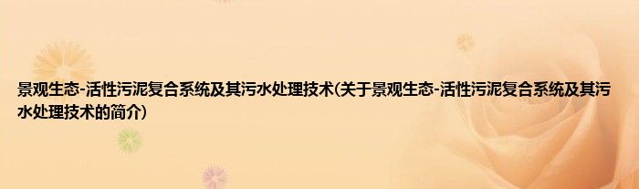 本文关于景观生态-活性污泥复合系统及其污水处理技术的简介就讲解完毕,希望对大家有所帮助。