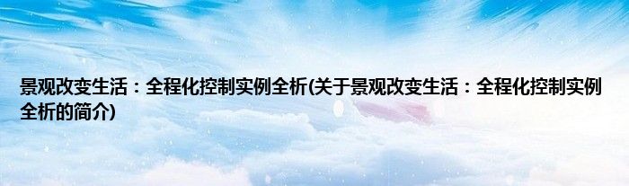 本文关于景观改变生活:全程化控制实例全析的简介就讲解完毕,希望对大家有所帮助。
