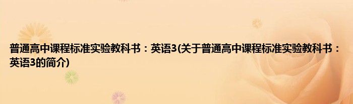 本文关于普通高中课程标准实验教科书:英语3的简介就讲解完毕,希望对大家有所帮助。