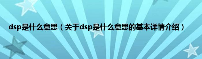 本文关于dsp是什么意思的基本详情介绍就讲解完毕,希望对大家有所帮助。