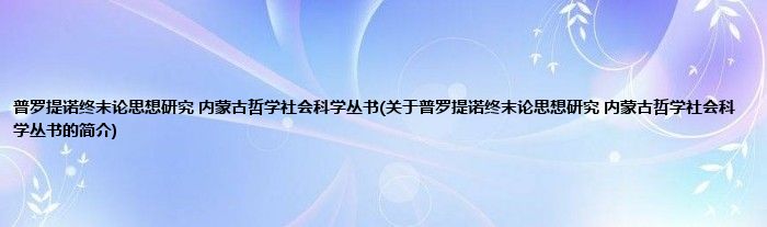 大家好,普罗提诺终末论思想研究 内蒙古哲学社会科学丛书,关于普罗提诺终末论思想研究 内蒙古哲学社会科学丛书的简介很多人还不知道,现在让我们一起来看看吧!