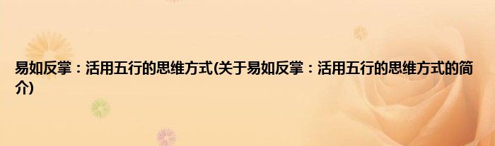 本文关于易如反掌:活用五行的思维方式的简介就讲解完毕,希望对大家有所帮助。