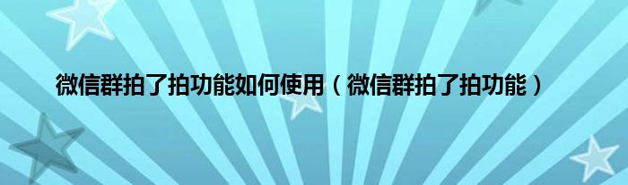 大家好,精选小编来为大家解答以上问题。微信群拍了拍功能如何使用,微信群拍了拍功能很多人还不知道,现在让我们一起来看看吧!