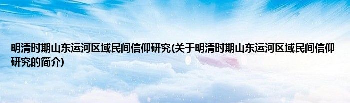 本文关于明清时期山东运河区域民间信仰研究的简介就讲解完毕,希望对大家有所帮助。