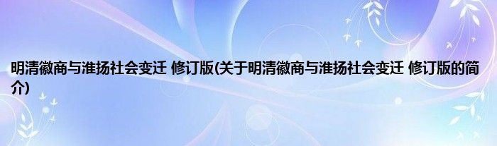 本文关于明清徽商与淮扬社会变迁 修订版的简介就讲解完毕,希望对大家有所帮助。