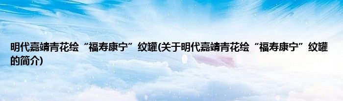 大家好,明代嘉靖青花绘“福寿康宁”纹罐,关于明代嘉靖青花绘“福寿康宁”纹罐的简介很多人还不知道,现在让我们一起来看看吧!