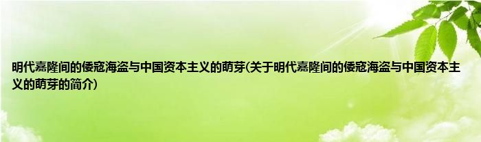 大家好,明代嘉隆间的倭寇海盗与中国资本主义的萌芽,关于明代嘉隆间的倭寇海盗与中国资本主义的萌芽的简介很多人还不知道,现在让我们一起来看看吧!