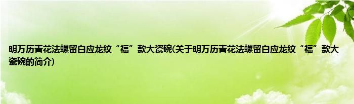 本文关于明万历青花法螺留白应龙纹“福”款大瓷碗的简介就讲解完毕,希望对大家有所帮助。