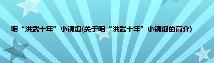 本文关于明“洪武十年”小铜炮的简介就讲解完毕,希望对大家有所帮助。