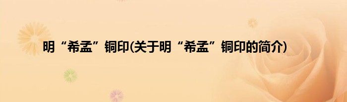1、 明“希孟”铜印是一件明代文物,现收藏于南京博物院。