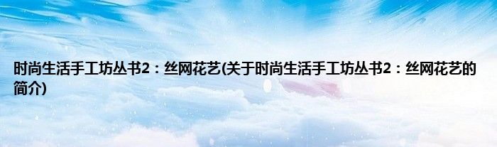 1、 《时尚生活手工坊丛书2丝网花艺》是2011年湖南美术出版社出版的图书。