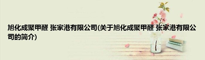 大家好,旭化成聚甲醛 张家港有限公司,关于旭化成聚甲醛 张家港有限公司的简介很多人还不知道,现在让我们一起来看看吧!