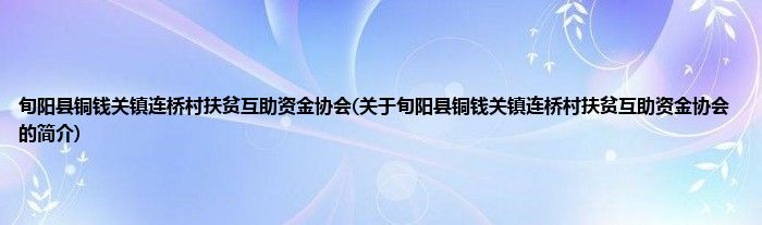 本文关于旬阳县铜钱关镇连桥村扶贫互助资金协会的简介就讲解完毕,希望对大家有所帮助。