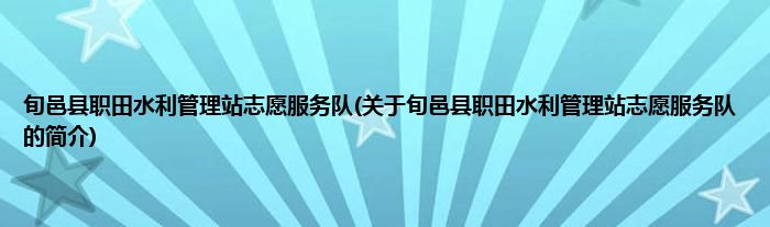 本文关于旬邑县职田水利管理站志愿服务队的简介就讲解完毕,希望对大家有所帮助。