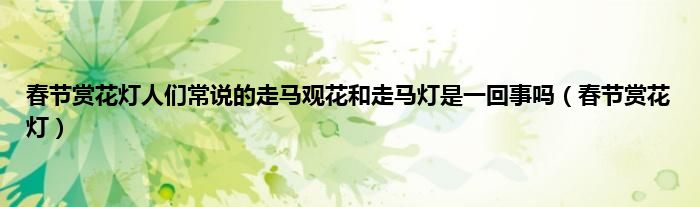 大家好,精选小编来为大家解答以上问题。春节赏花灯人们常说的走马观花和走马灯是一回事吗,春节赏花灯很多人还不知道,现在让我们一起来看看吧!