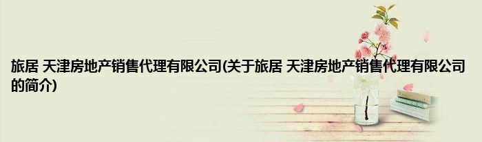 本文关于旅居 天津房地产销售代理有限公司的简介就讲解完毕,希望对大家有所帮助。