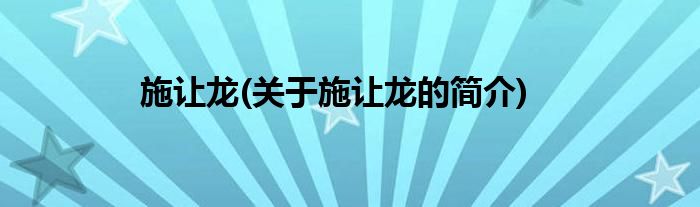 本文关于施让龙的简介就讲解完毕,希望对大家有所帮助。