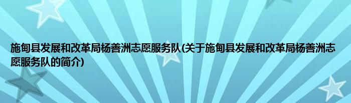 1、 施甸县发展和改革局杨善洲志愿服务队是由施甸县杨善洲志愿者服务队领导下的志愿团体。