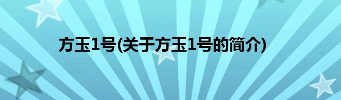 大家好,方玉1号,关于方玉1号的简介很多人还不知道,现在让我们一起来看看吧!