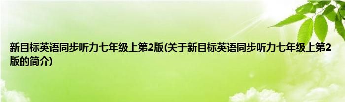 本文关于新目标英语同步听力七年级上第2版的简介就讲解完毕,希望对大家有所帮助。