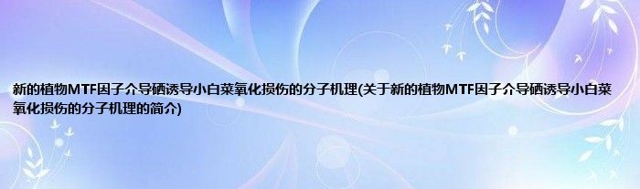 本文关于新的植物MTF因子介导硒诱导小白菜氧化损伤的分子机理的简介就讲解完毕,希望对大家有所帮助。