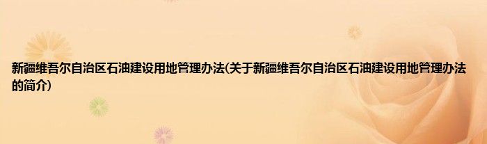 大家好,新疆维吾尔自治区石油建设用地管理办法,关于新疆维吾尔自治区石油建设用地管理办法的简介很多人还不知道,现在让我们一起来看看吧!