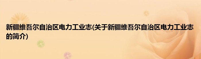 本文关于新疆维吾尔自治区电力工业志的简介就讲解完毕,希望对大家有所帮助。