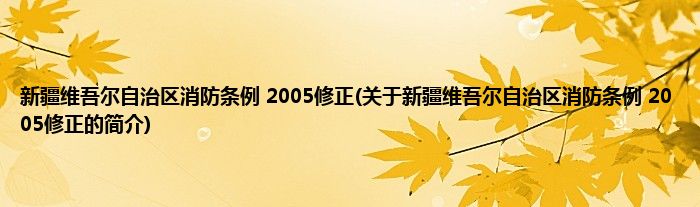 本文关于新疆维吾尔自治区消防条例 2005修正的简介就讲解完毕,希望对大家有所帮助。