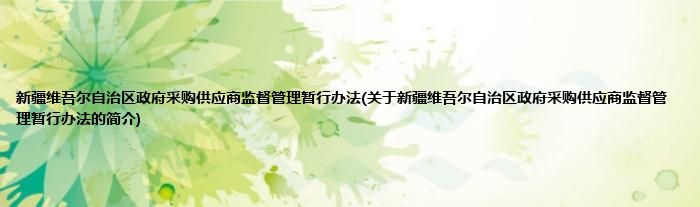 大家好,新疆维吾尔自治区政府采购供应商监督管理暂行办法,关于新疆维吾尔自治区政府采购供应商监督管理暂行办法的简介很多人还不知道,现在让我们一起来看看吧!