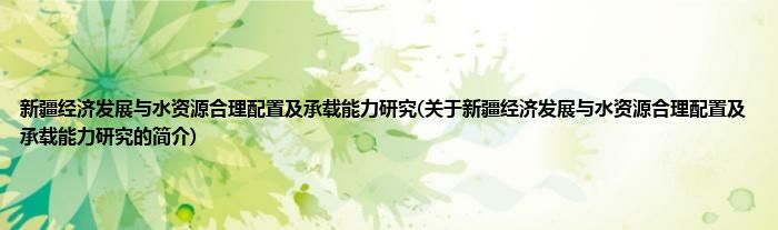 大家好,新疆经济发展与水资源合理配置及承载能力研究,关于新疆经济发展与水资源合理配置及承载能力研究的简介很多人还不知道,现在让我们一起来看看吧!