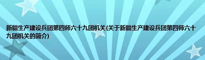 1、 新疆生产建设兵团第四师六十九团机关是一个组织机构。