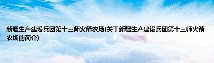 本文关于新疆生产建设兵团第十三师火箭农场的简介就讲解完毕,希望对大家有所帮助。