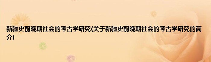 大家好,新疆史前晚期社会的考古学研究,关于新疆史前晚期社会的考古学研究的简介很多人还不知道,现在让我们一起来看看吧!