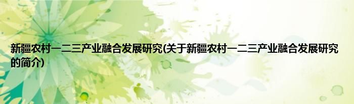 大家好,新疆农村一二三产业融合发展研究,关于新疆农村一二三产业融合发展研究的简介很多人还不知道,现在让我们一起来看看吧!